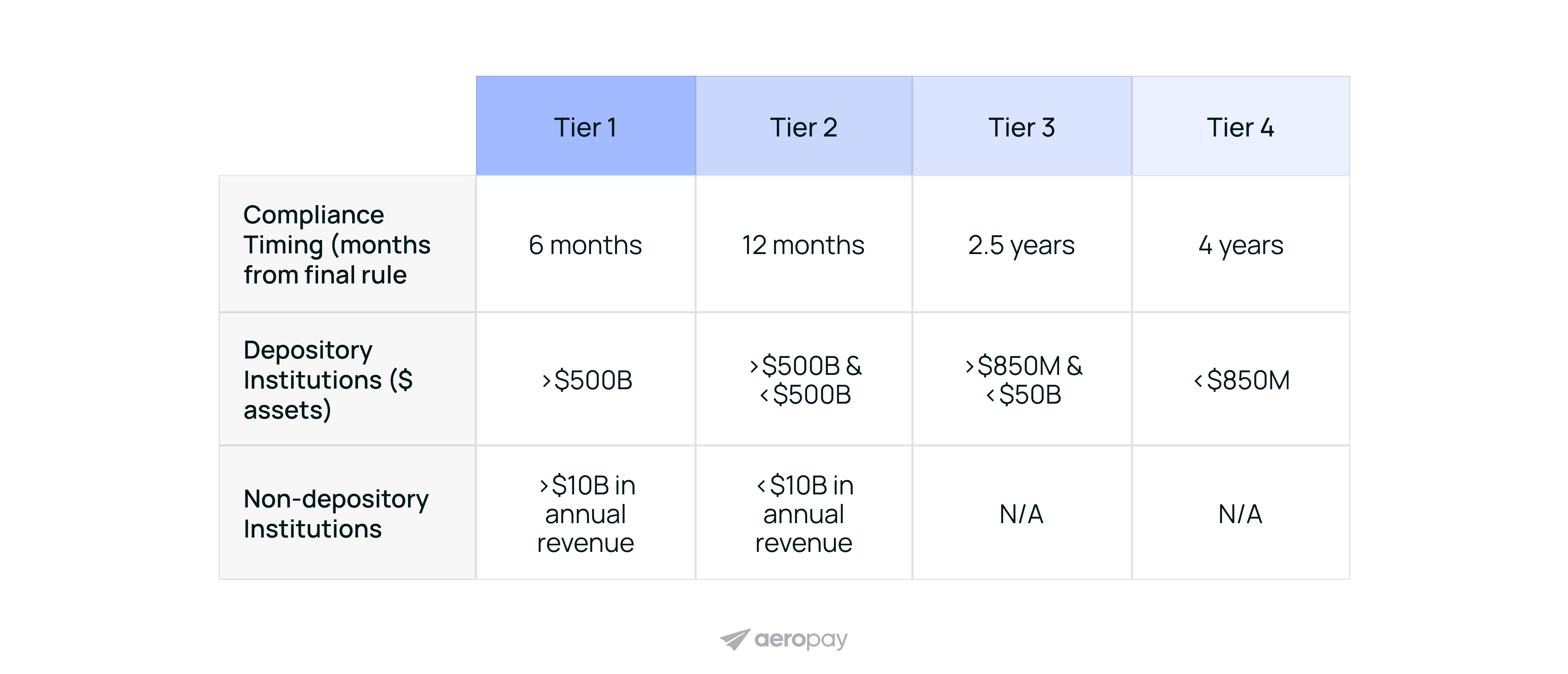While the CFPB’s proposed rule is expected to take effect soon, financial institutions aren’t expected to adopt open banking right away. Larger banks and FIs must adopt these open banking standards within 6 to 12 months, with smaller banks and credit unions following in phases.